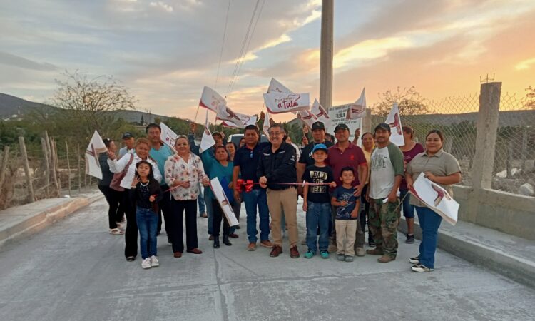El alcalde de Tula, René Lara Cisneros, acompañado por la síndica Bellanira Ortiz Toscano, la regidora Linsey Cantero y el director de Obras Públicas, Eleazar Fortuna, encabezó la entrega de la pavimentación hidráulica de la prolongación Guadalupe Victoria en el barrio Los Pirules.