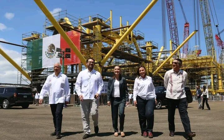 Durante el evento celebrado en el Patio Industrial de Pueblo Viejo, Veracruz, y junto a la gobernadora anfitriona Rocío Nahle García, al pie de las nuevas plataformas petroleras marinas construidas por Petróleos Mexicanos, la presidenta Claudia Sheinbaum destacó la presencia de Américo Villarreal, a quien consideró «un hombre nacionalista y visionario».